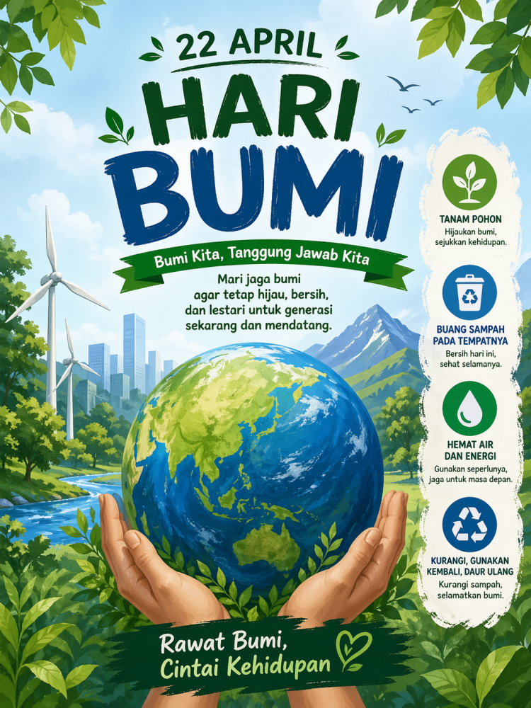 Setiap tanggal 22 April, masyarakat di seluruh dunia memperingati Hari Bumi. Peringatan ini menjadi pengingat bahwa bumi adalah rumah bagi semua makhluk hidup sehingga harus dijaga dan dilestarikan bersama. Hari Bumi pertama kali diperingati pada tahun 1970 sebagai gerakan global untuk meningkatkan kesadaran tentang pentingnya menjaga lingkungan.